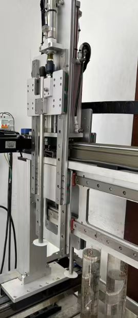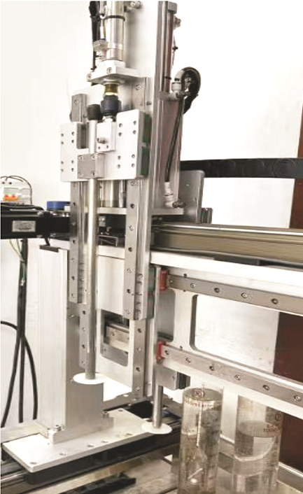 1、堆垛机械手自动把玻璃量杯(或人工)放置在搅拌位置上。