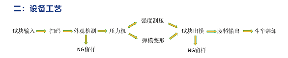 该系统通常包括来料机构、定位机构以及抗压测试机构和机器人系统组成。来料机构负责传输混凝土试块,定位机构则使用测量组件对试块的几何参数进行测量,而抗压测试机构则通过移动组件和压力试验机对试块的强度进行检测。这种系统可以实现混凝土试块的自动输送、自动检测,并且与全自动养护机构联合使用后,还可以实现试块养护和强度检测流程的一体化、自动化、智能化